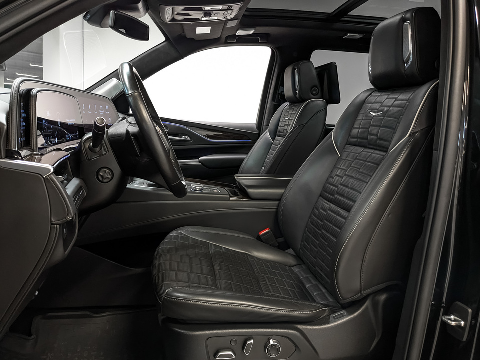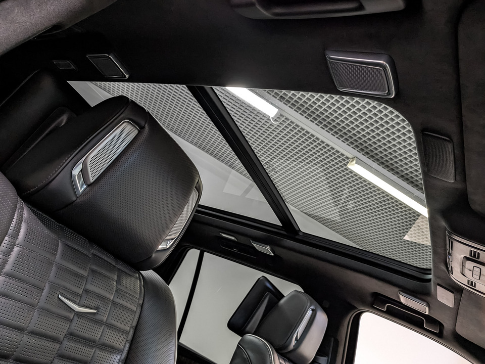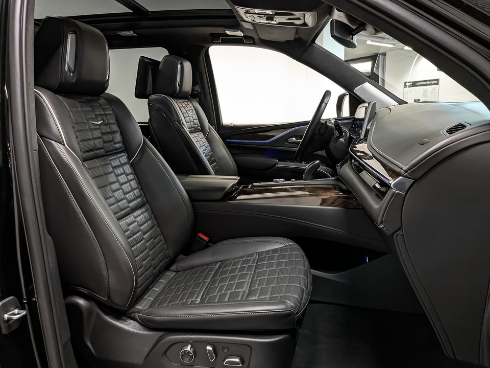 В обновленном Cadillac Escalade ESV салон стал более просторным, благодаря тому, что сам кузов удлинен на добрых полметра. Пассажирам второго и третьего рядов понравится путешествие в салоне, где можно удобно вытянуть ноги и наслаждаться комфортными сиденьями. Доступ сюда упрощен, за счет расширенного угла открытия двери.
